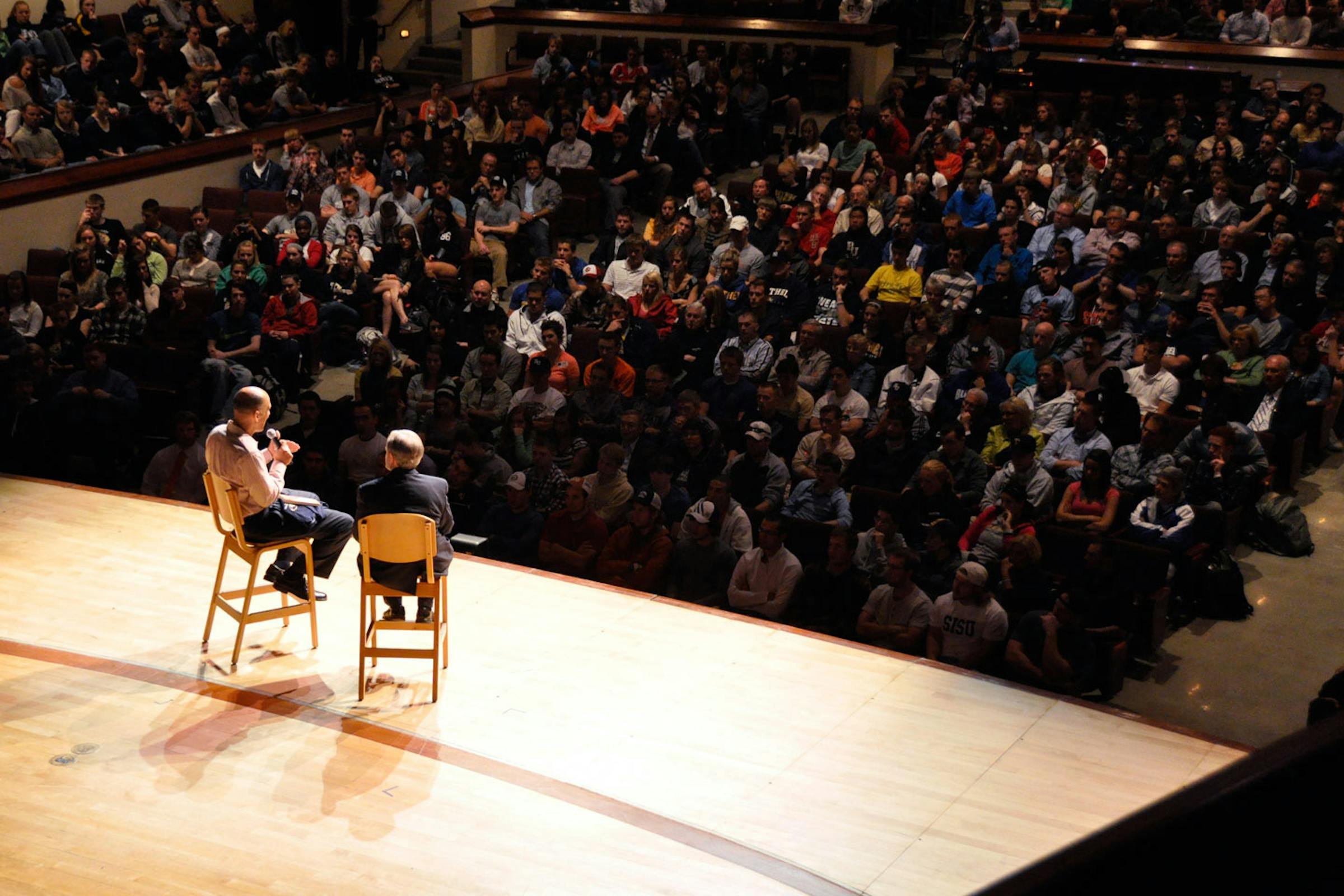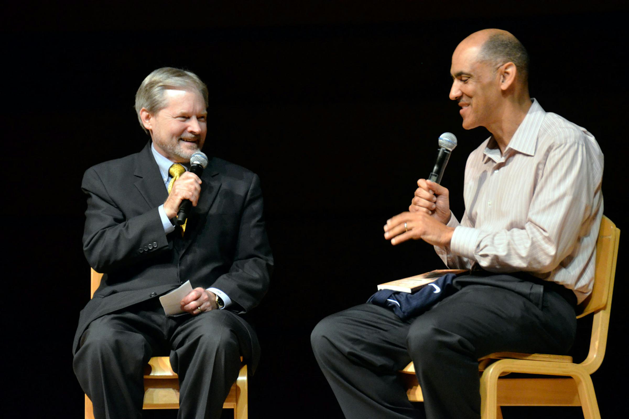 The second half of Dungy’s presentation was open to the entire Bethel community. Dungy tailored his talk toward the importance of a spiritual component in one’s life, especially in conjunction with the social, educational, and physical demands that are already present in a collegiate lifestyle. He then sat down with President Jay Barnes, who asked a series of questions about coaching, mentoring, leadership, and faith. In answer to a question about a person in the Bible who resonates with him, Dungy mentioned the apostle Paul. “I admire Paul, who lived with a mixture of boldness and compassion,” he explained. “Paul says in 1 Corinthians 11, ‘Follow me as I follow Christ,’ which challenges me to live accordingly, and I challenge you the same.”