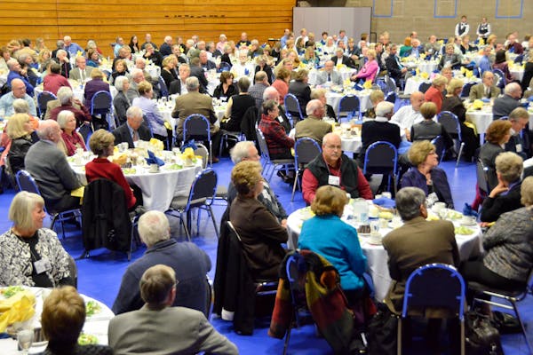 Alumni homecoming events began on October 5 when the Alumnus of the Year award was presented during chapel to Paul Healy ’77. Other events included the 5-K Run/Walk, alumni prayer breakfast, campus tours, an integrative wellness lecture, and reunion parties and dinners. The homecoming football game on October 6 ended with a successful two-point conversion to give the Royals a 15-14 win over the Concordia College Cobbers.