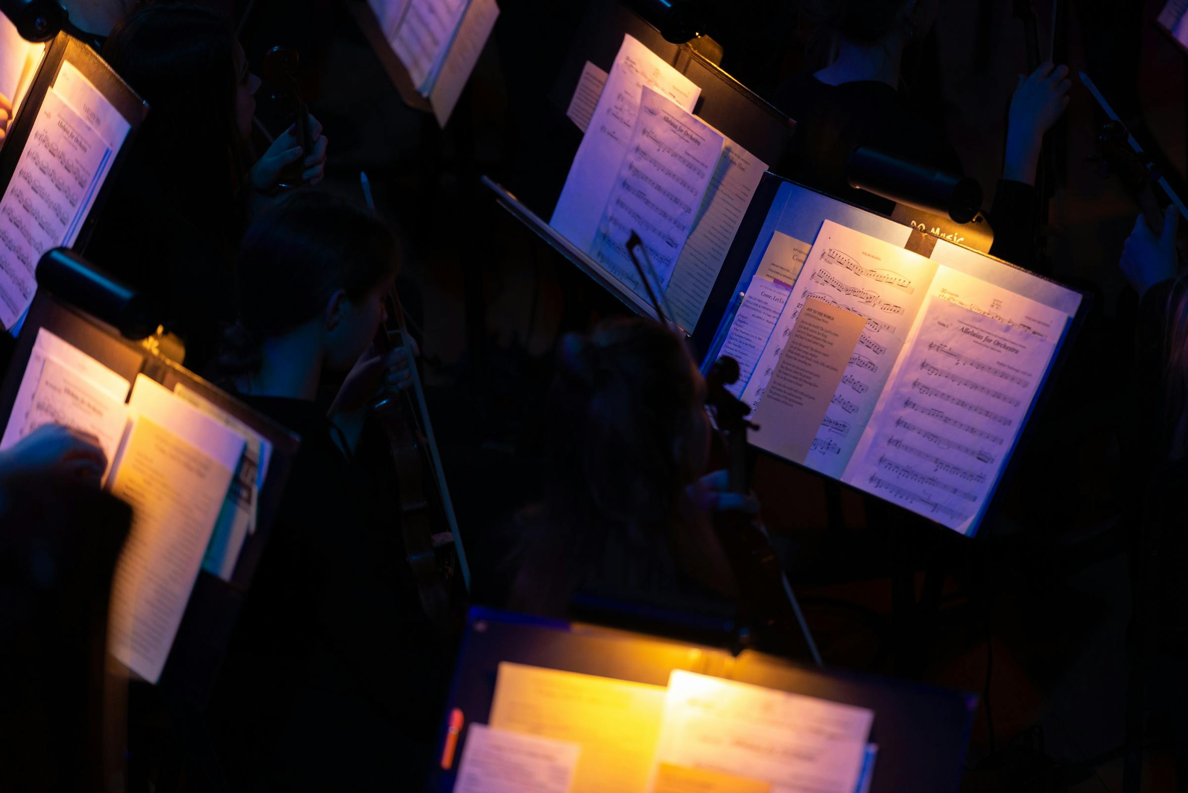 The first song introduced this year’s theme. Arranged by Music Department Chair Jonathan Veenker, “O Come, All Ye Faithful” began with the orchestra, gradually building for the choir to enter from the back of Benson Great Hall. The choir filled the aisles, surrounded the audience, and sung over flickering candles housed in multicolored jars.