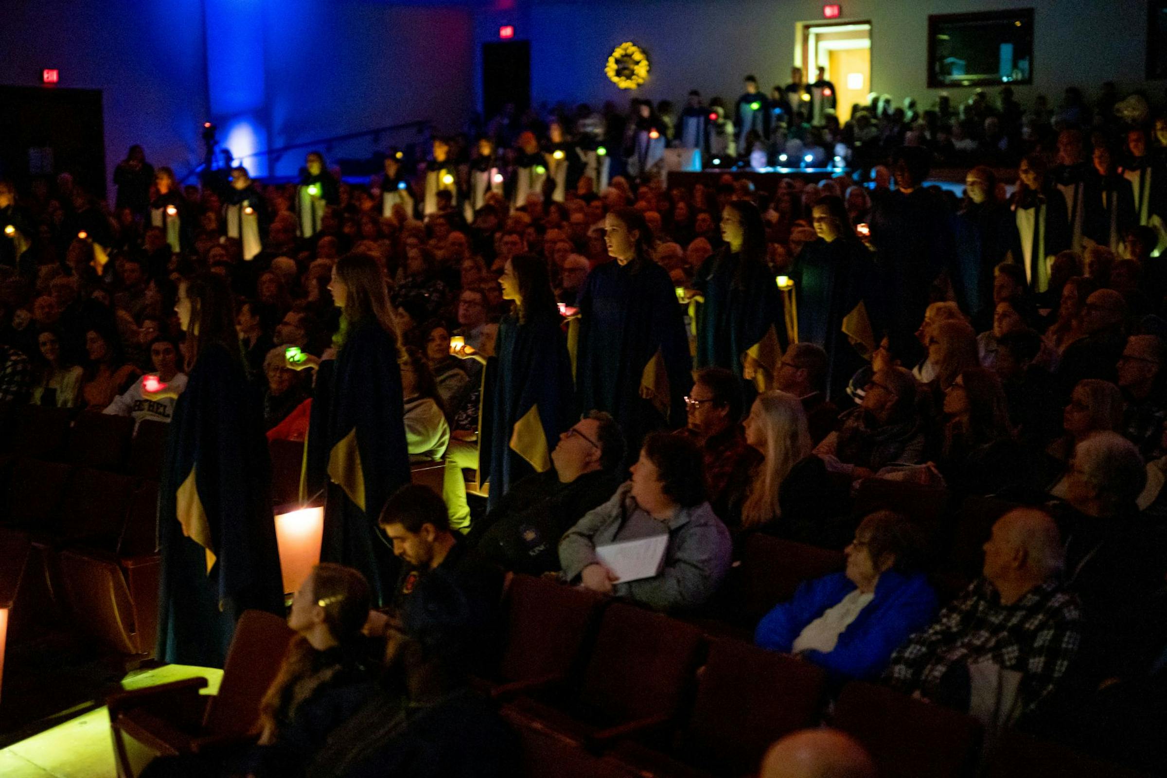 The performances started, as always, with a few words from President Ross Allen, which led into the processional. The Festival Choir entered Benson Great Hall carrying multicolored candles, singing “There Shall a Star from Jacob Come Forth” from Cristus. A chill washed over the audience as each individual was gradually transported from the busyness of their daily lives to the beauty of the performance. Each song illuminated a new dimension to the theme, from “The First Noel” performed by the Handbell Ensemble and Orchestra to “Northern Lights” sung by the Bethel Choir to “Hark! The Herald Angels Sing,” which required audience participation.