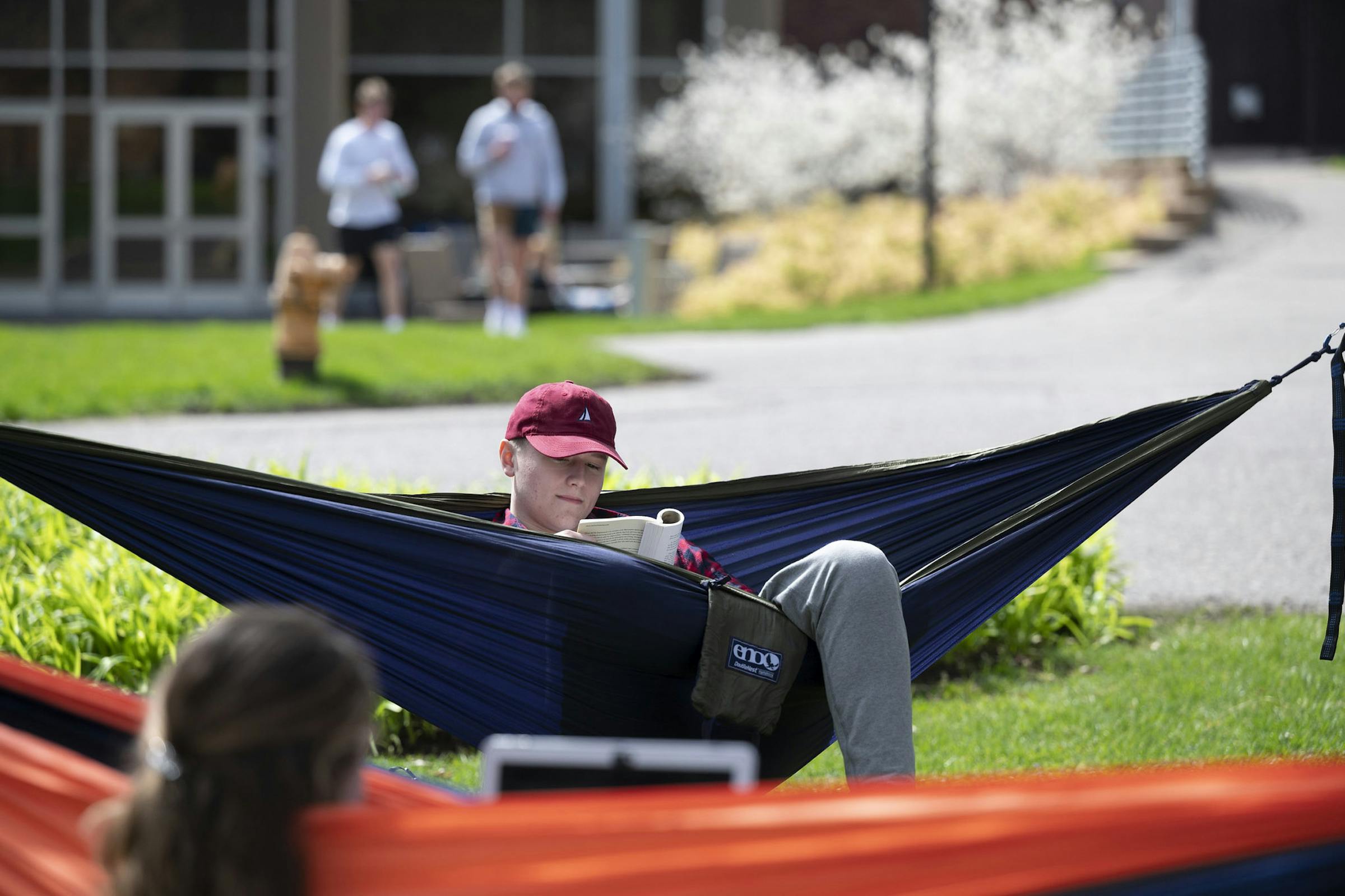 If one were to visit Bethel on a balmy, sunny day (at least 40 degrees), odds are they’d find students lounging in hammocks. Whether they’re chatting with pals, doing homework, reading for fun, or snoozing—Royals try to chase the warmer weather as much as they can. There are numerous places across Bethel’s 247 acres to hammock—on The Hill, near the dock, on the Russell W. Johnson Nature Trail, Sem Hill, and more! So grab your gear, wear your shades, and get outside.
