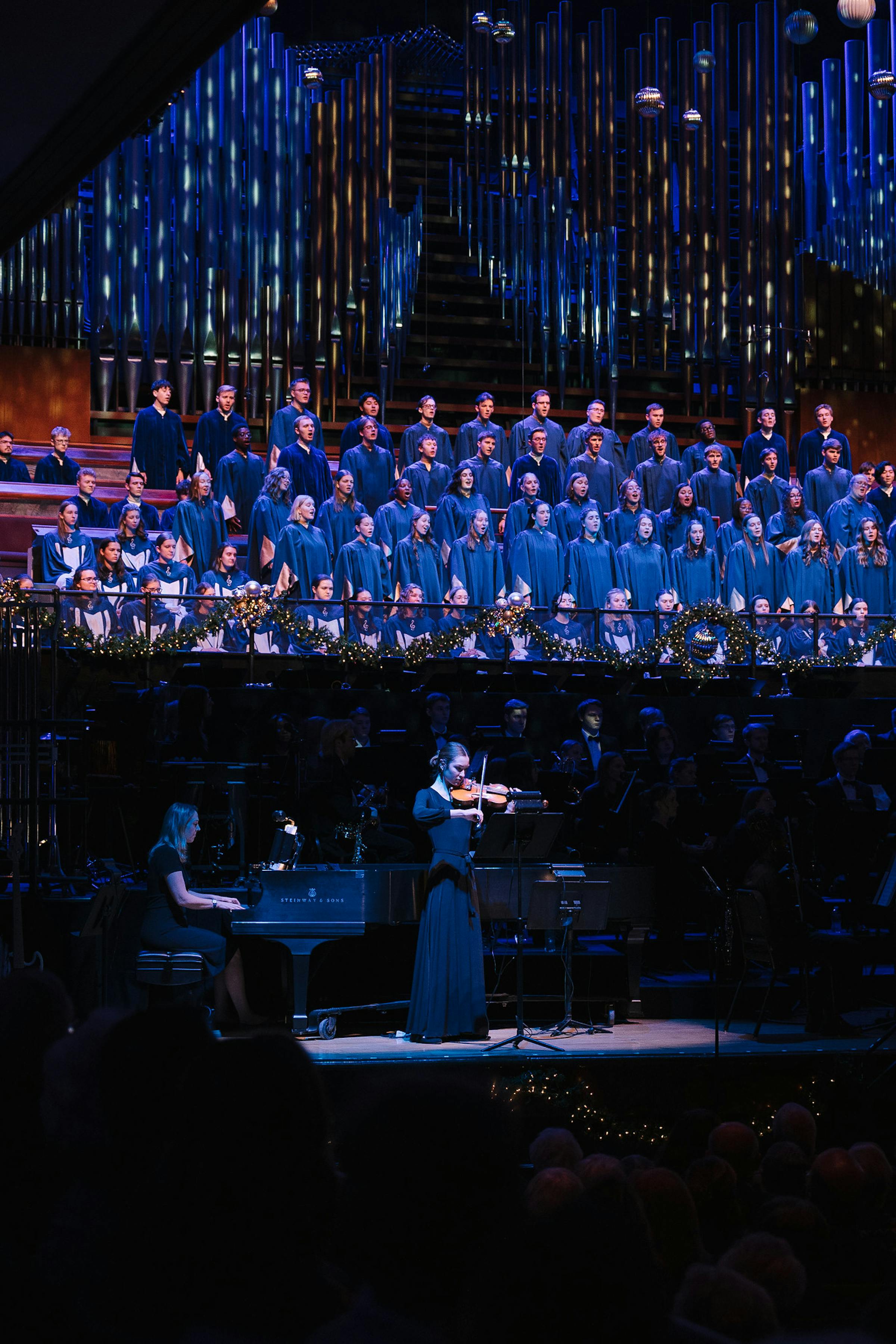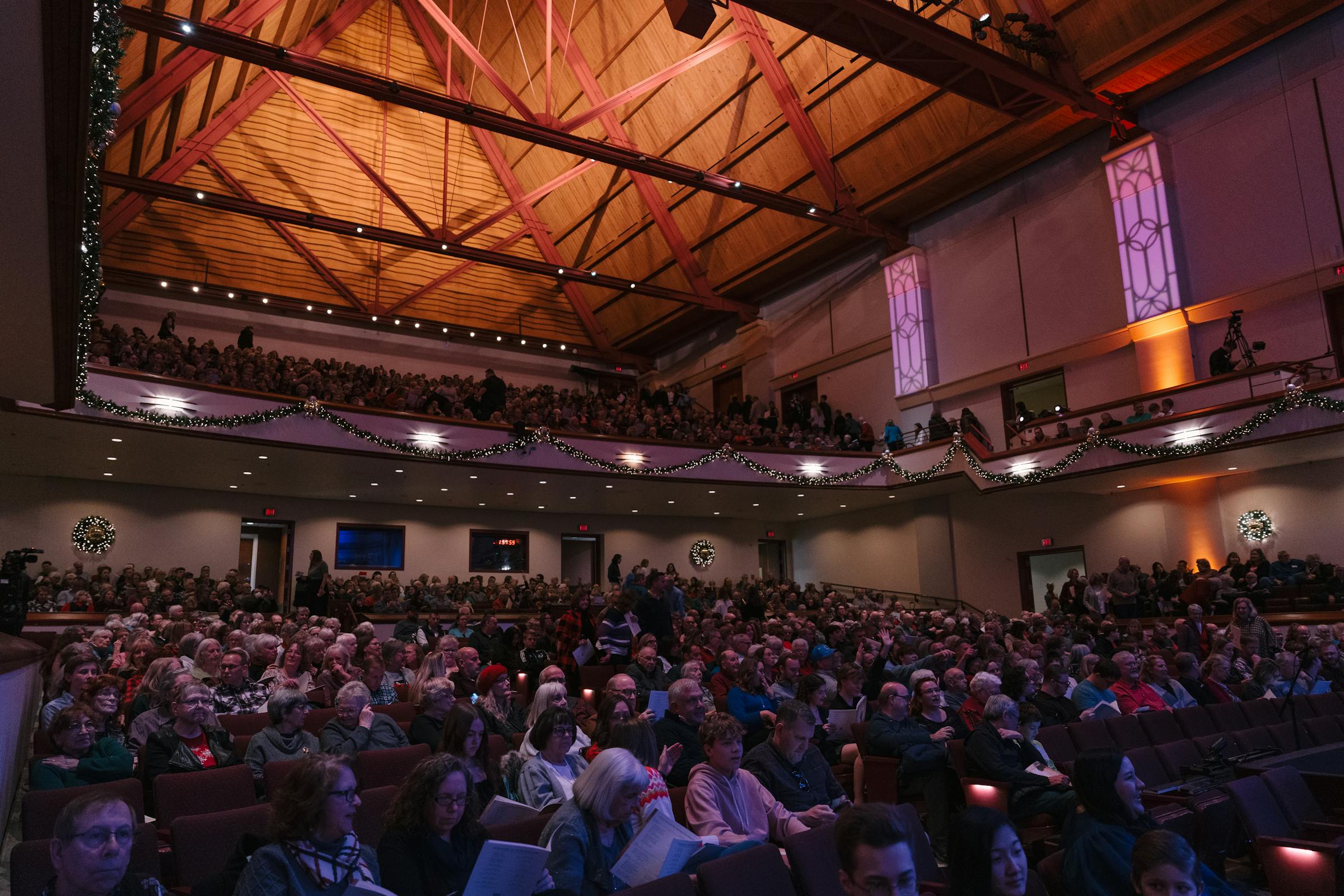 The evening began with the choir positioned in the balcony and rafters, each holding a candle, as they moved toward the stage. The lighting around the stage, with bright holiday-themed designs, created a warm, festive atmosphere and set the tone for the night. Audience participation was another special element of the evening, with attendees joining in on beloved carols and songs throughout the program. Children also helped narrate the scripture readings, bringing the Christmas story to life in a personal, relatable way.